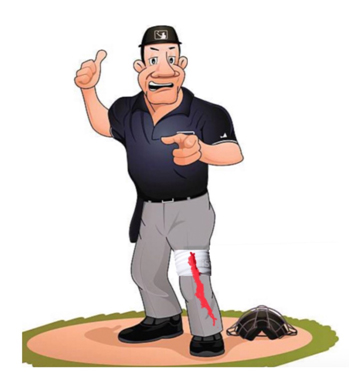 En cierto partido de categoría sénior, y siempre en ese improvisado diamante-arenal, un compañero del anterior ampayer, fue peligrosamente golpeado por un bate, en la parte posterior de su cabeza, como consecuencia de un largo y torpe swing.